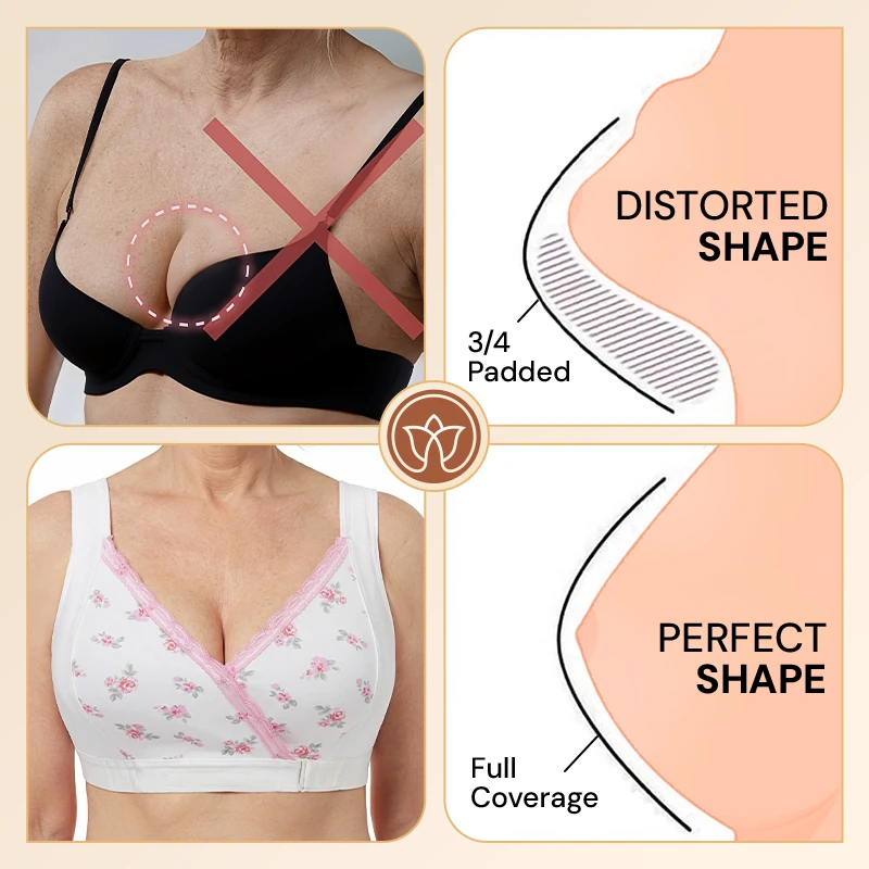 Designed with seniors in mind, the Fiona Bra features an innovative front-wrap closure, making it incredibly easy to put on and take off in less than 5 seconds. Say goodbye to struggling with back hooks or straining muscles on tiny buttons; its unique wrap-it-up system gently supports and shapes for a fuller bust with minimal effort.